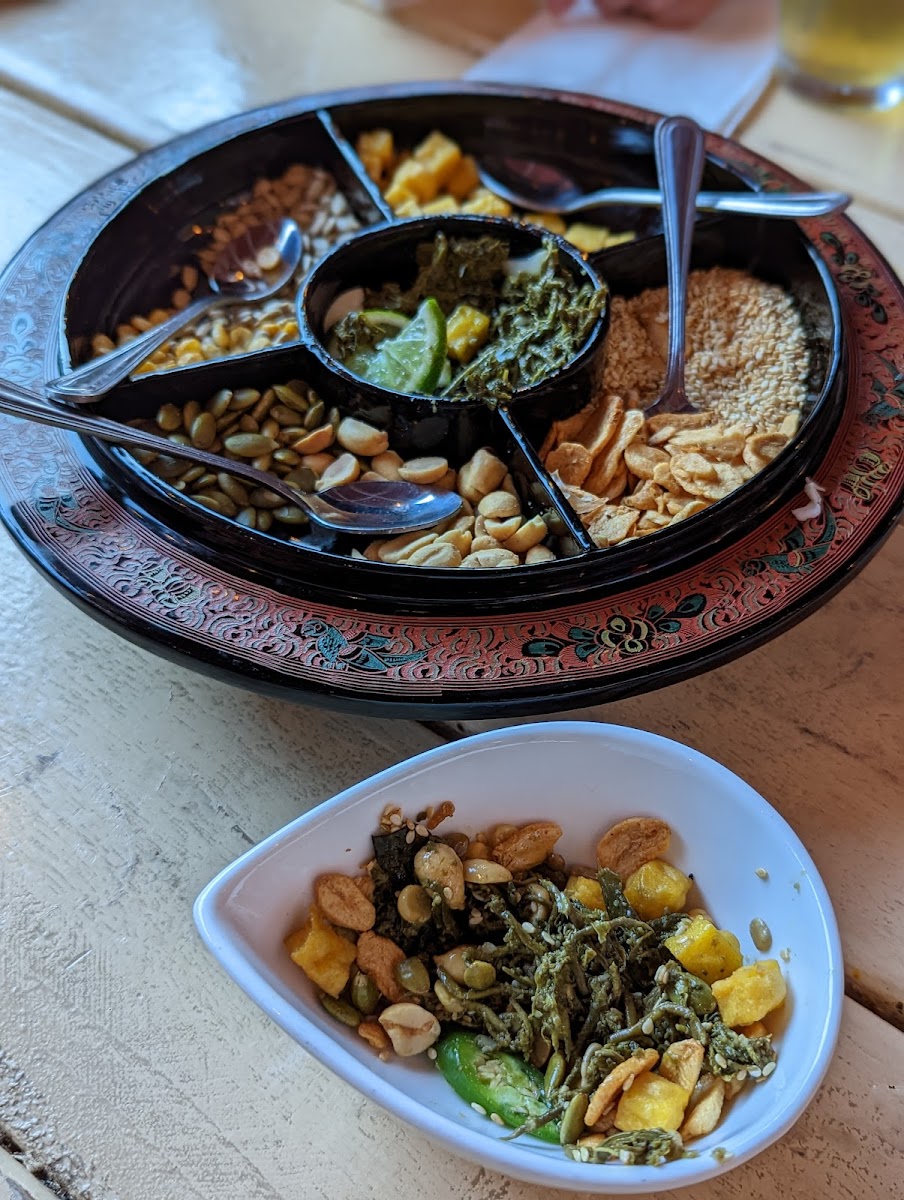 What makes this restaurant stand out is how confidently it introduces Burmese cuisine without overexplaining it. Burmese food is often described by food historians at organizations like the James Beard Foundation as a bridge between Indian, Thai, and Chinese flavors, and you can taste that balance immediately. The menu leans heavily on freshness, layering herbs, fermented ingredients, and slow-cooked proteins in a way that feels both bold and familiar. A great example is the tea leaf salad, a dish UNESCO has recognized as culturally significant in Myanmar. Here, it arrives perfectly balanced, with crunchy nuts, tangy fermented tea leaves, and a brightness that wakes up your palate.