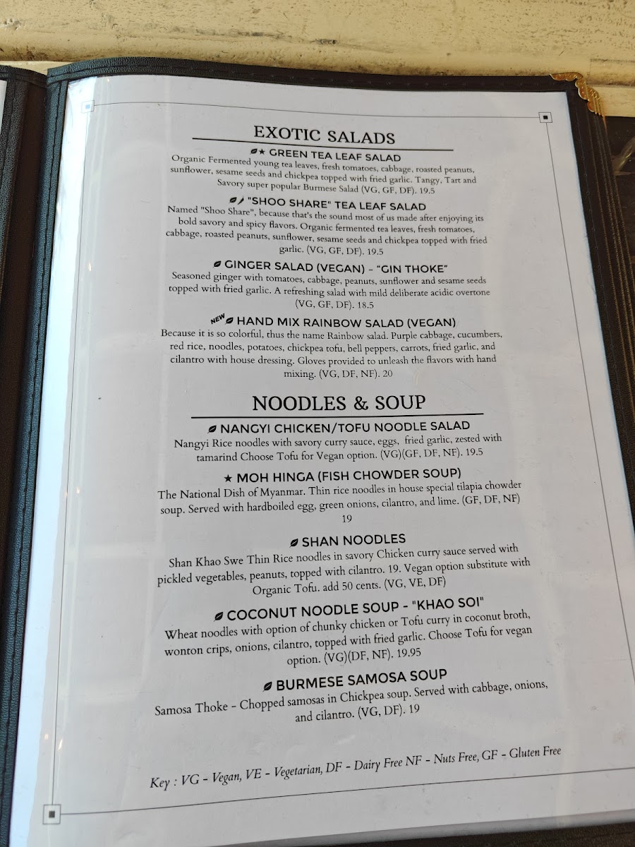 Thin Rice noodles in Organic Tofu curry sauce served with pickled vegetables, peanuts, topped with cilantro. A popular dish of Burma's Shan State, the country's largest ethnic tribe (VG, VE, DF).