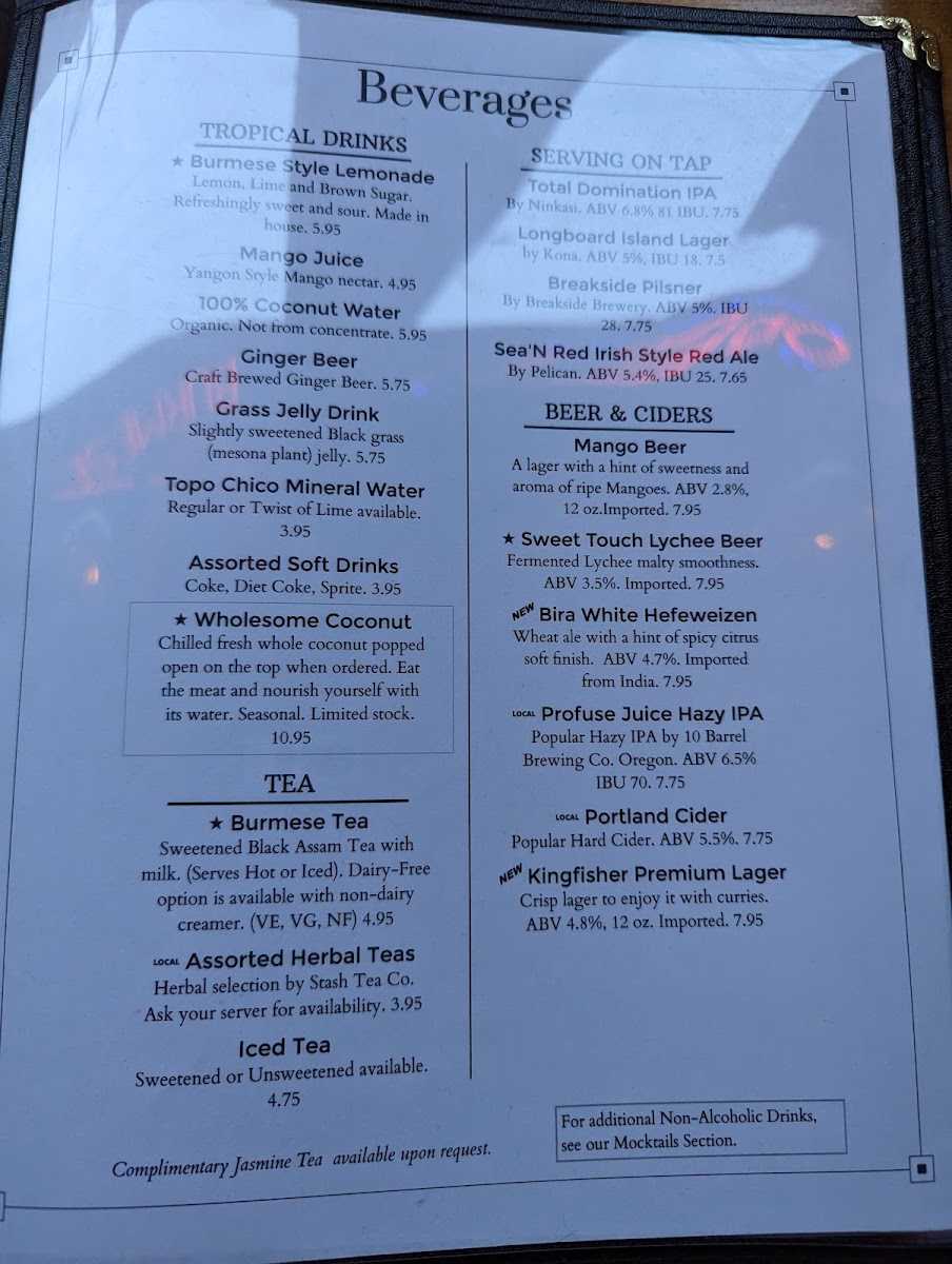 The center piece of Burmese Tea Culture. "The Laphet Ye' Cho" Assam Black Tea served with Milk. Non-dairy version is available.